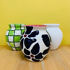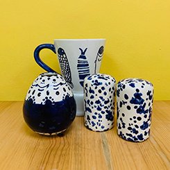 We have a large selection of ceramics and vibrant paint colours to choose from. So as to help you create your own unique work of art, we also have a variety of tools; from stamps and sponges, to stencils and paint pens.
